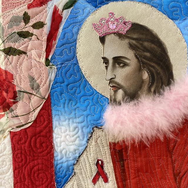Commercial and found fabrics- pieced, appliqué, and machine quilted.